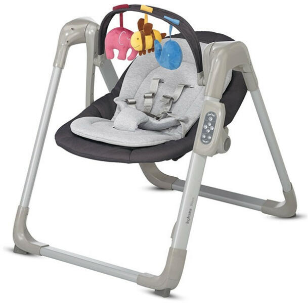 Gyermeke első játszótere. A kellemes hintázó és ringató mozgás segít a babának ellazulni, elaludni, és jókat játszani, amikor ébren van. A tágas párnázott ülés biztosítja a gyermek számára a kényelmes elhelyezkedést, valamint az első hónapokban használandó puha fejtámla körülöleli a csöppséget, mint egy meleg ölelés. Amikor a baba ébren van, három mókás, színes és nagyon puha plüss figurával játszadozhat. Ha eljön az alvás ideje, 12 különböző dallamból választhatunk, amelyek álomba ringatják a kicsit. Amennyiben szeretnénk, hogy a saját magunk által választott zenére aludjon el, ennek sincs akadálya. Különálló zenelejátszó egység is rácsatlakoztatható a hintára. A csomag tartalma:Hinta, puha fejtámla az első hónapokra, játékhíd 3 színes és nagyon puha plüss figurával, csatlakoztató, csatlakoztató vezeték különálló zenelejátszó egység csatlakoztatásához. Tulajdonságok:Használata születéstől 9 kg-os súlyig ajánlott. A tágas párnázott ülés huzata és párnázott része teljesen eltávolítható és a tökéletes tisztaság érdekében 30°C-on kézzel mosható. A játékhídon 3 színes és nagyon puha plüss figura lóg, amelyek különböző tapintású anyagból készültek és különböző hangokat adnak ki, így segítik elő nagy mértékben a gyermekek szellemi és fizikai fejlődését. A hintázást teljes mértékben a baba igényeihez tudja igazítani. 3 féle állítható sebesség és időzítő funkcióval ellátott (8, 15 és 30 perc). A hinta 12 különböző dallam lejátszását teszi lehetővé. A lehetőségeknek semmi sem szab határt, amennyiben saját okostelefonunkat vagy különálló zenelejátszó egységet csatlakoztatunk a hintához. 2 pozícióba dönthető. A puha fejtámla használata az első hónapokban ajánlott, a légáteresztő 3D hálóban a bélés lehetővé teszi a levegő áramlását. A fejtámla levehető és 30°C-on mosógépben mosható. Puha huzattal ellátott biztonsági öv. Összecsukva nagyon kompakt, önmagában megáll. Csúszásmentes talpakkal ellátott. Műszaki adatok:Súly: 5 kgMaximális terhelhetőség: 9 kgMéretek szétnyitott állapotban: 64 x 67 x 78 cm (szélesség x magasság x mélység)Méretek összecsukott állapotban: 64 x 79 x 20 cm (szélesség x magasság x mélység)Elemekkel működik (4 x AA 1,5 V) vagy a mellékelt adapterrel. Súly csomagolással együtt: 6,3 kgA csomag méretei: 17 x 42 x 16,5 cm